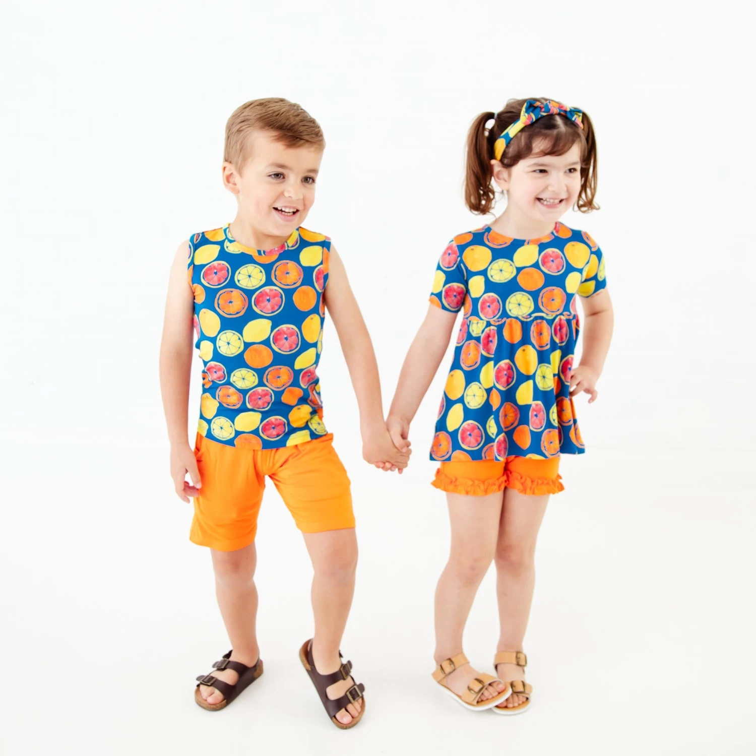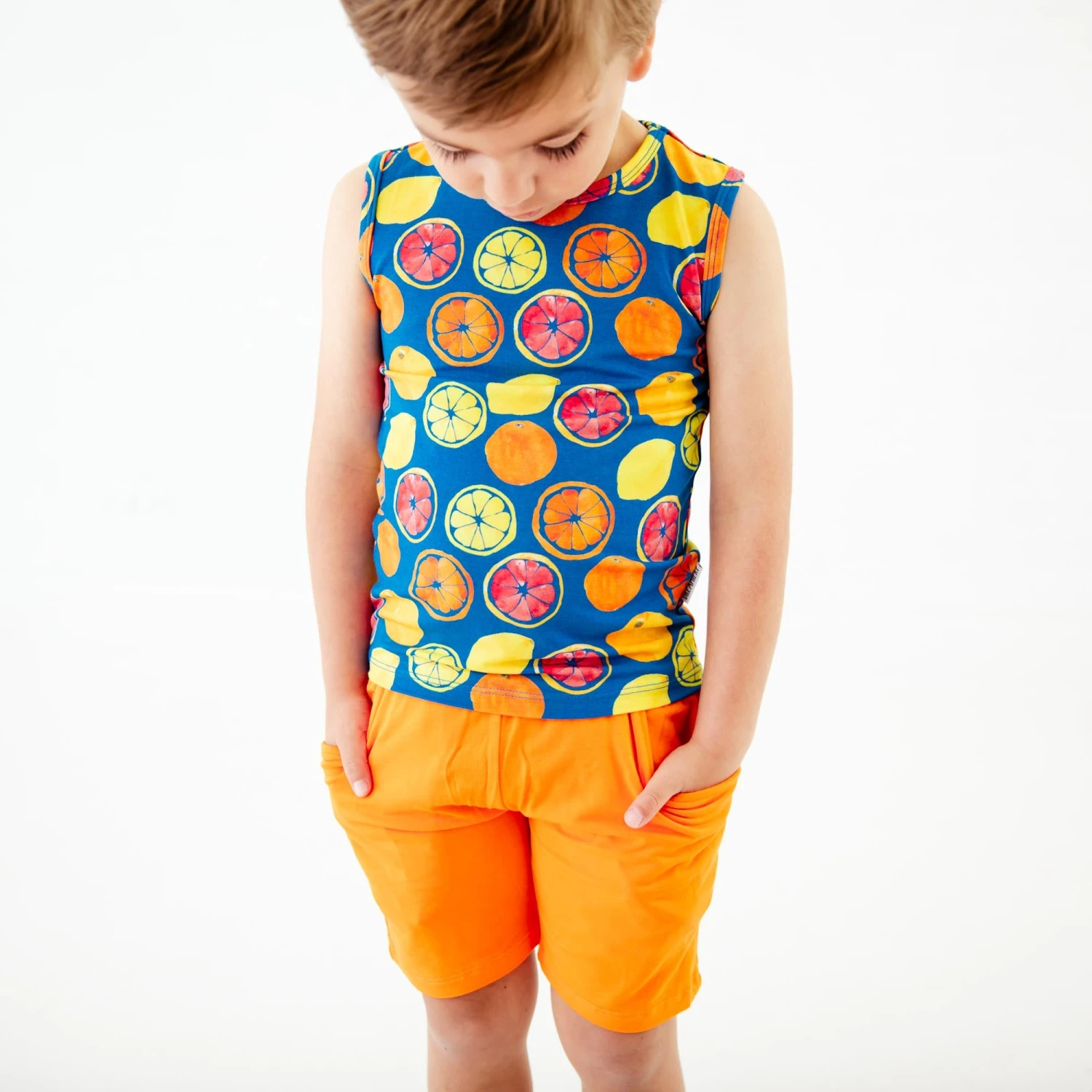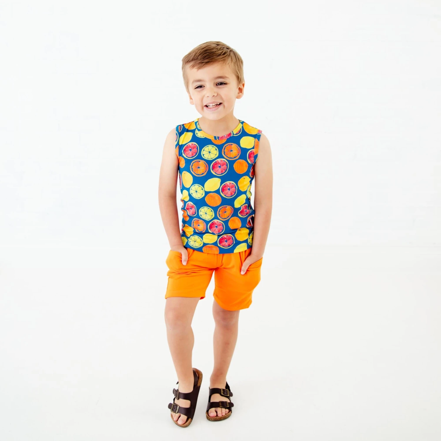 Lemonade anyone? These fruit slices would make the perfect ice cold refreshment on a hot summer day! Made with the same same soft and stretchy bamboo viscose as our convertible footies, this basic tank and short set is the perfect daywear set for your favorite toddler or big kid! These comfortable solid shorts feature pockets. The printed tank will keep your little ones comfy and cool on the hottest of days.