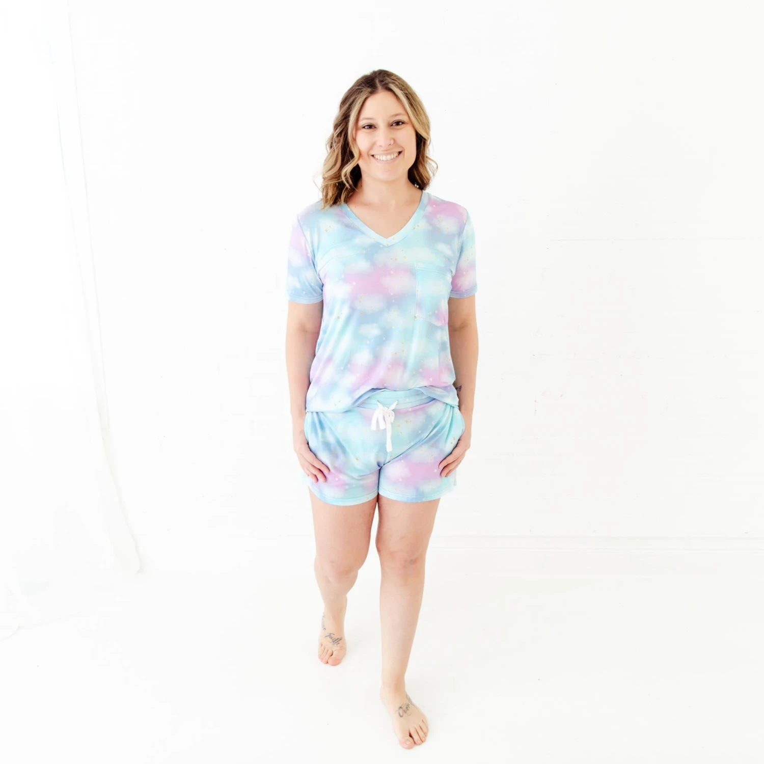 Made with the same soft and stretchy bamboo viscose as our children’s jamms, these two piece women’s loungewear sets are perfect for year round wear! Featuring a pocket V-Neck shirt, this top is the perfect for both daytime and nighttime wear. Our ultra comfortable pocket shorts feature a thick elastic waist band, with adjustable drawstring. Perfect for matching your little ones!
