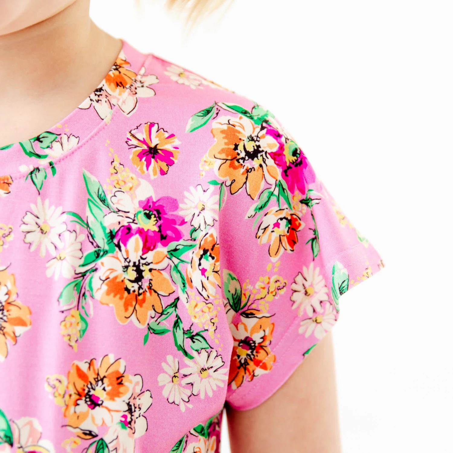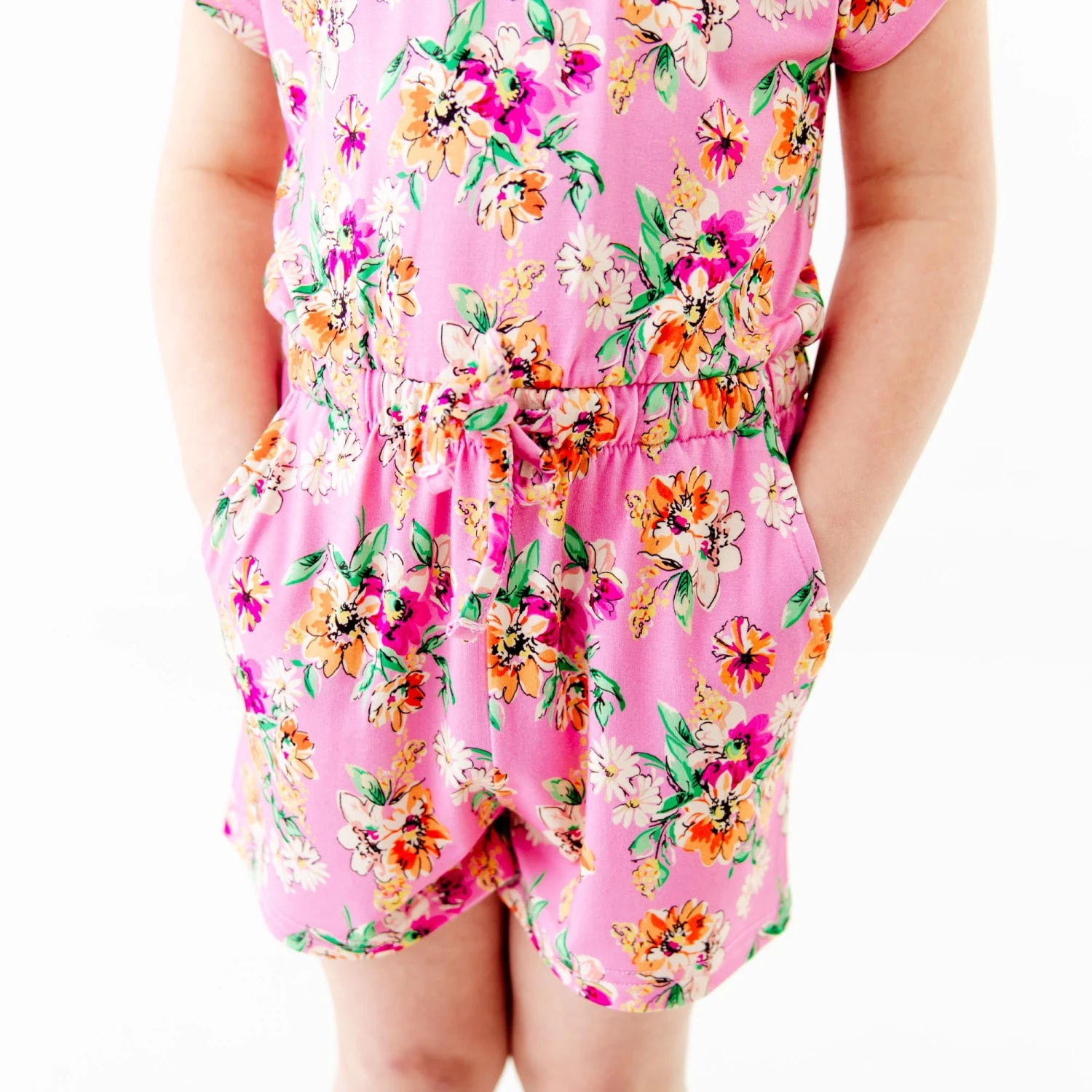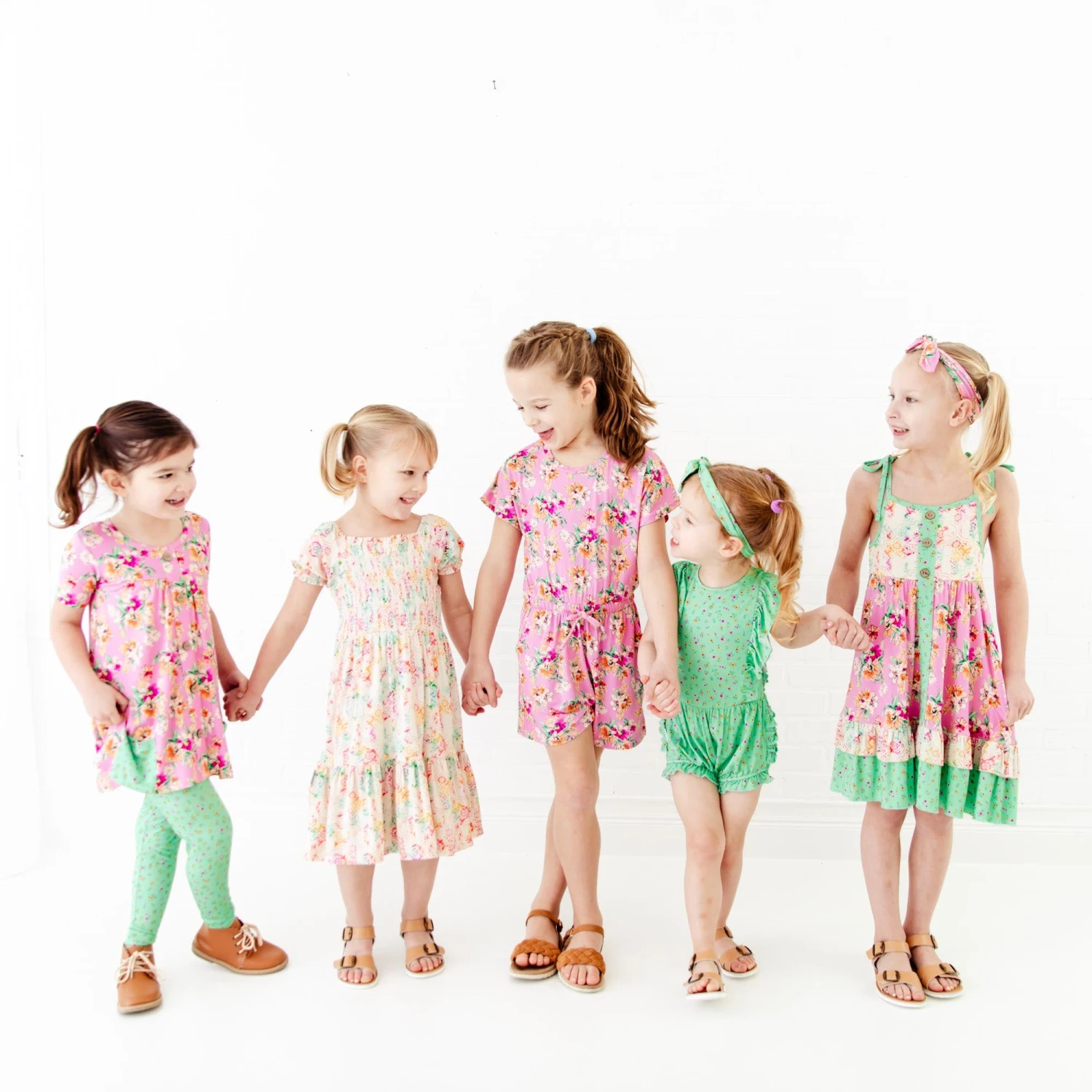 The perfect spring floral! The Luxe romper is made with both comfort and style in mind! This perfect daywear piece will be a staple in your little girl’s closet. With pockets and a gathered waist it’ll be easy to dress it up or down!