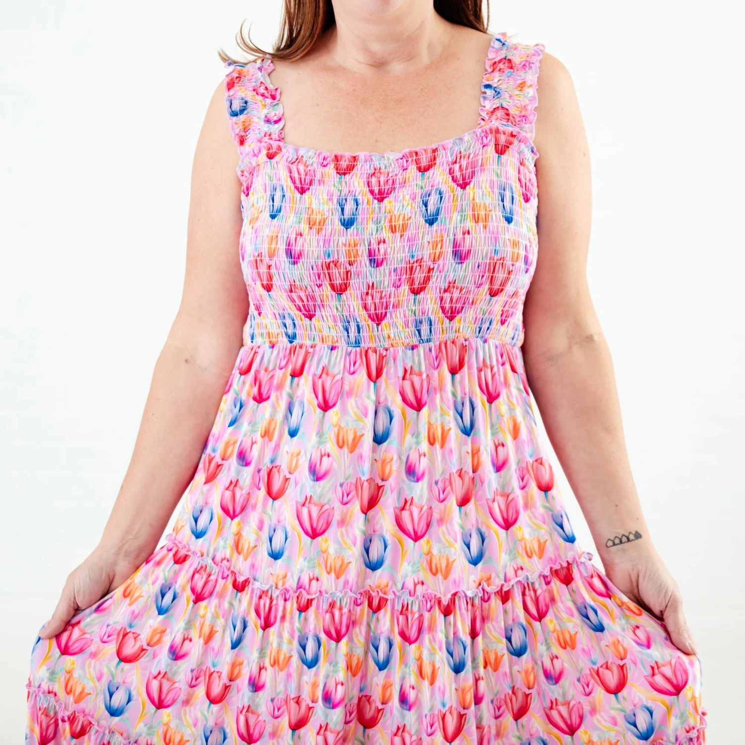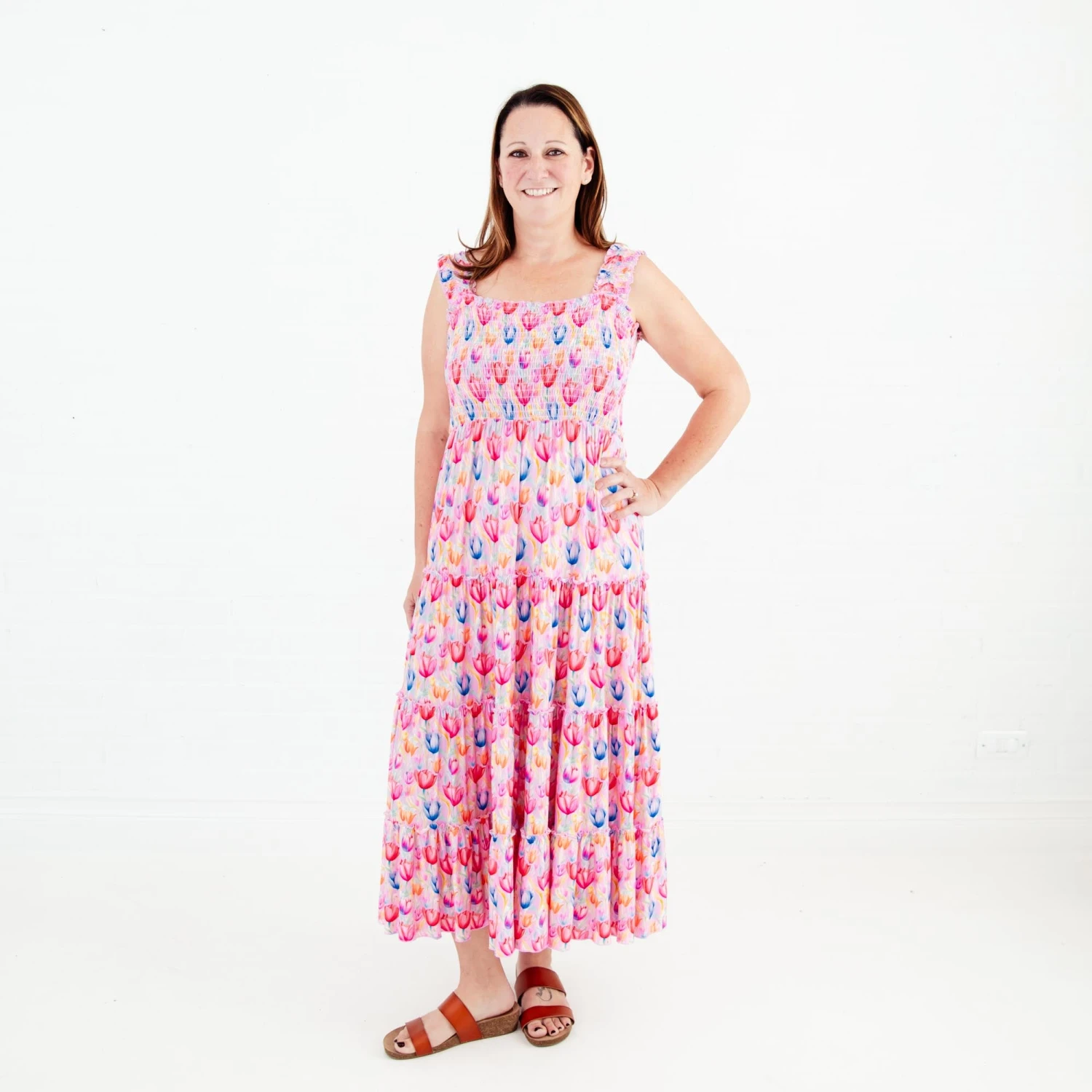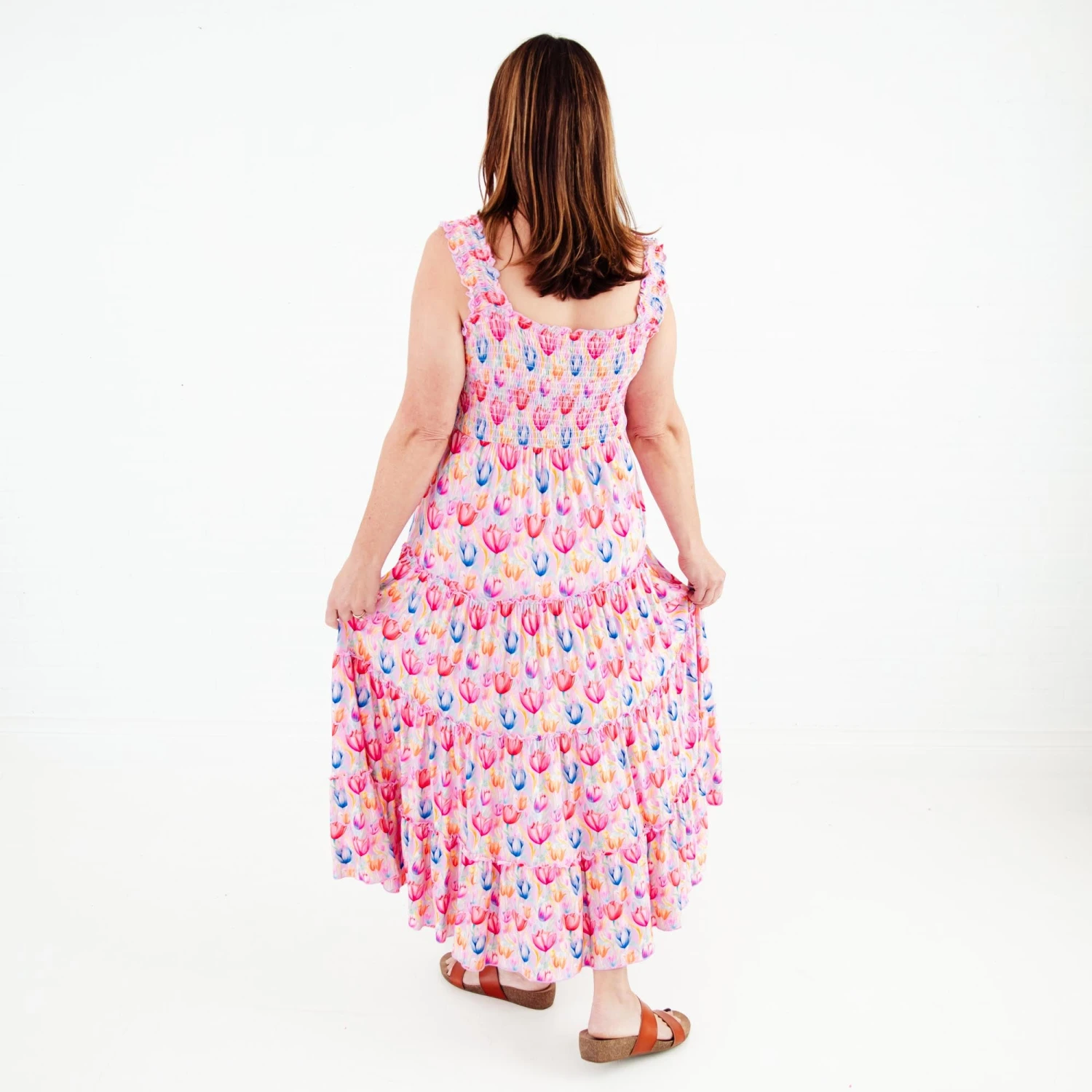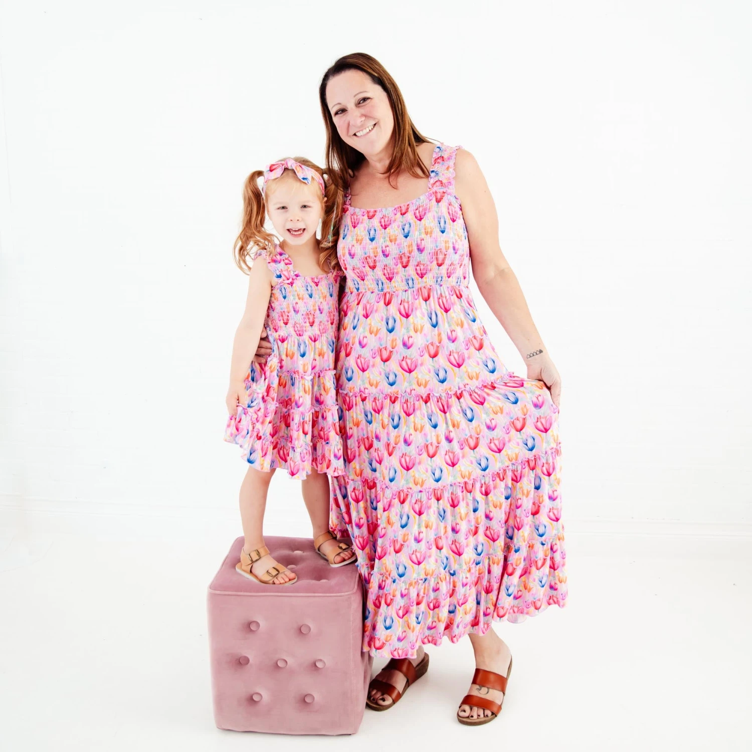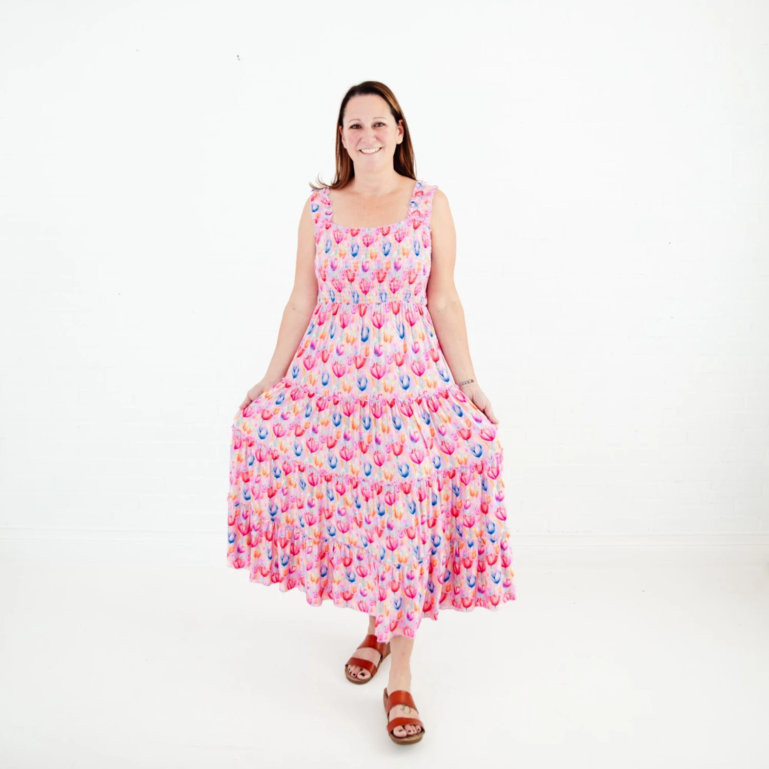 The perfect collection to celebrate Easter in, with vibrant tulips adorning this beautiful collection, showing that spring is on it’s way! Your search for the perfect bamboo daywear piece stops right here! Made with gorgeous smocked detailing on the bodice and straps, with multiple tiered layers, this dress is perfect for matching your little cutie!