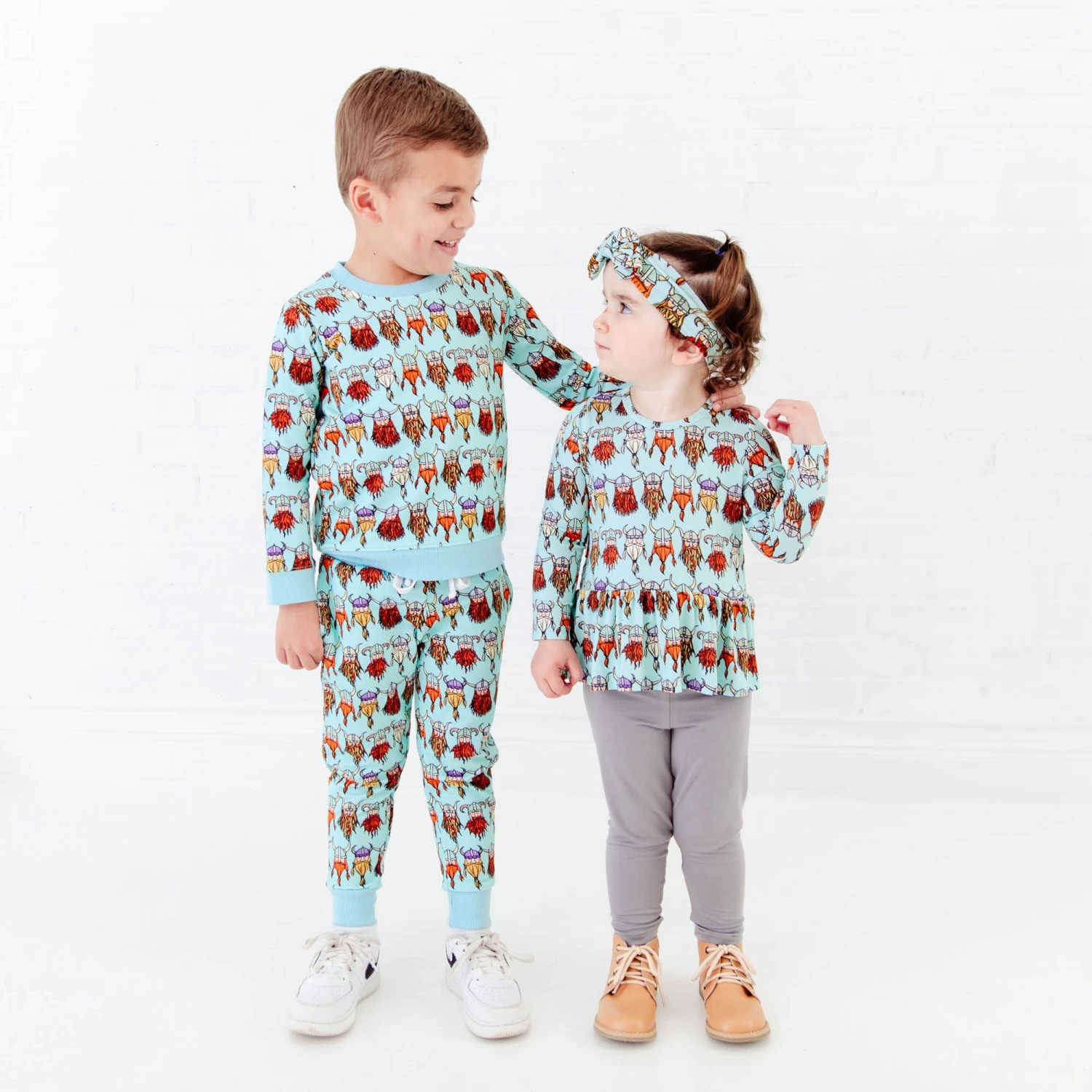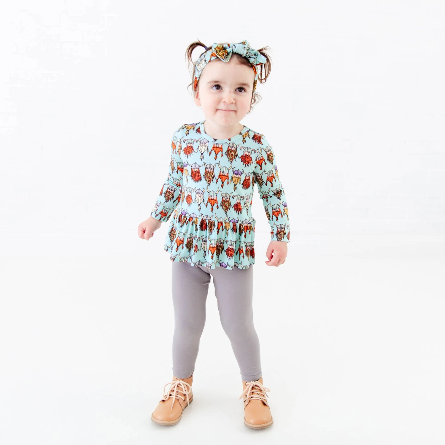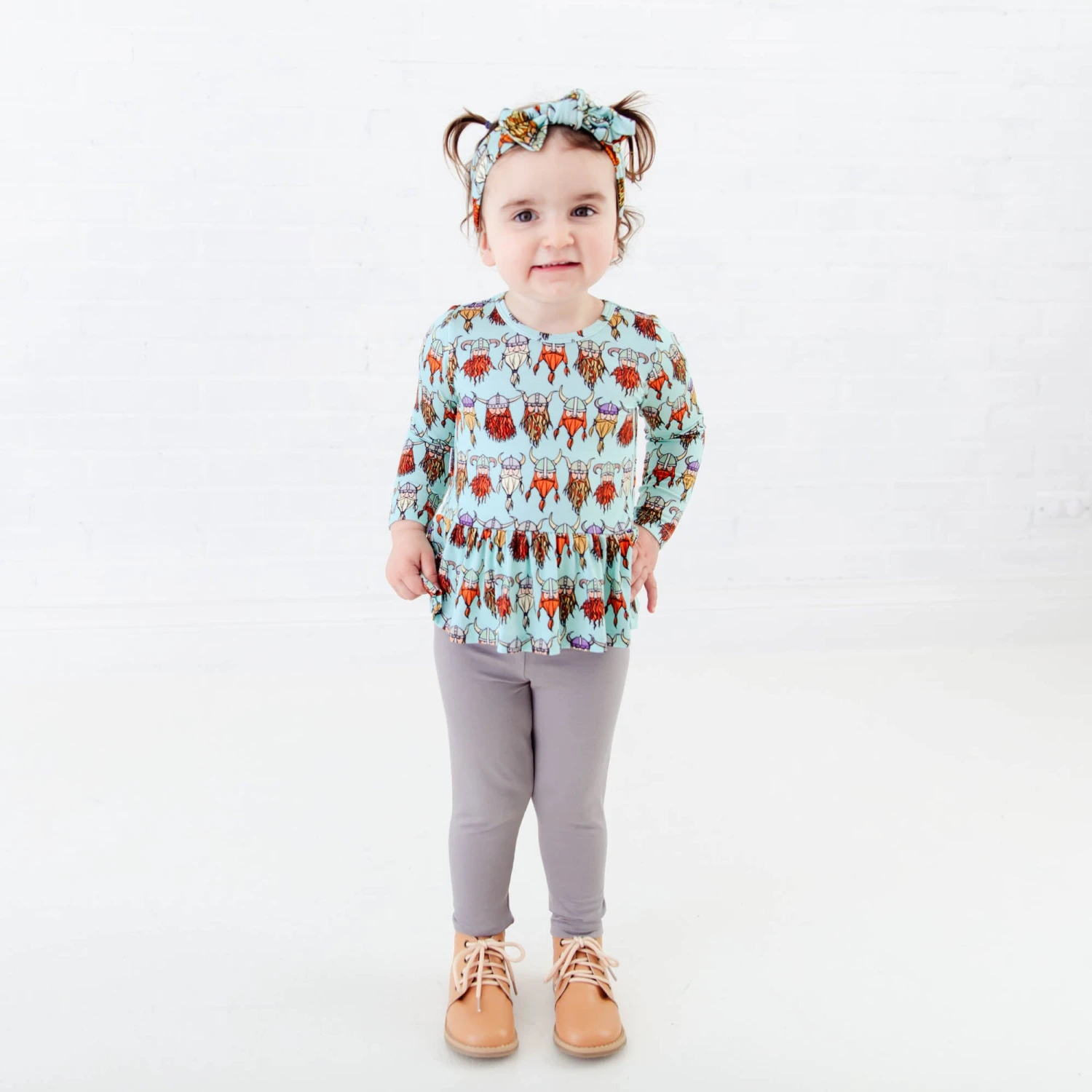 Made with the same same soft and stretchy bamboo viscose as our convertible footies, this long sleeve twirler top and leggings set is the perfect daywear set for your favorite toddler or big kid! These comfortable pants feature an elastic waistband and an ultra-smooth fit. The twirler top features a ruffled peplum bottom, for that extra cute factor!