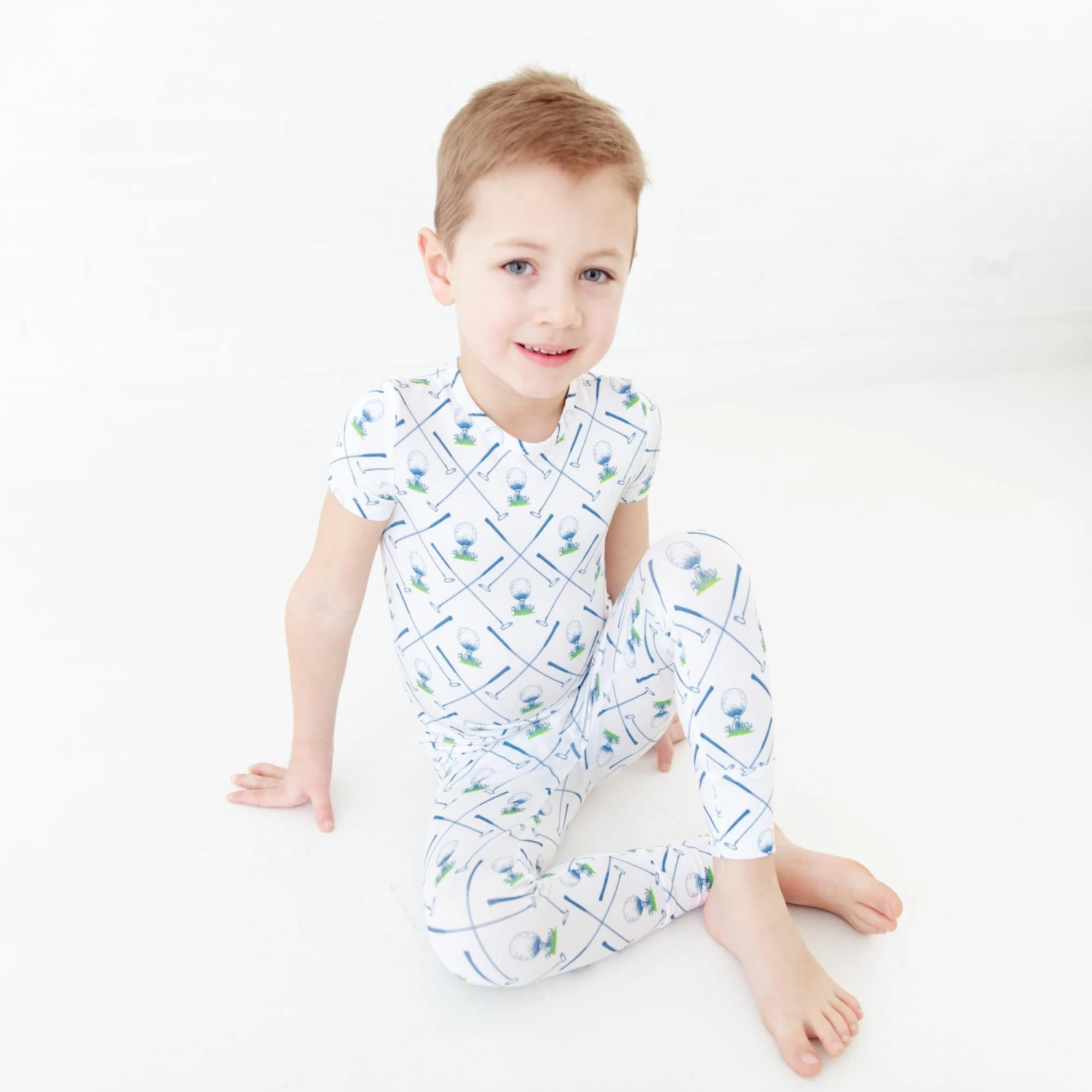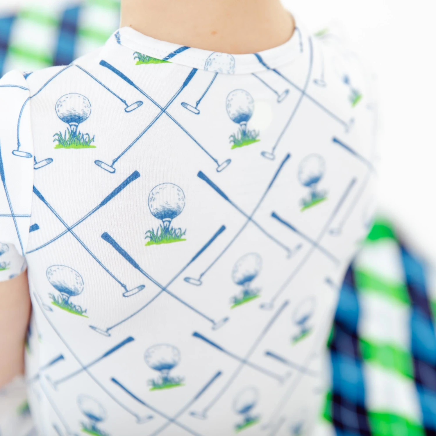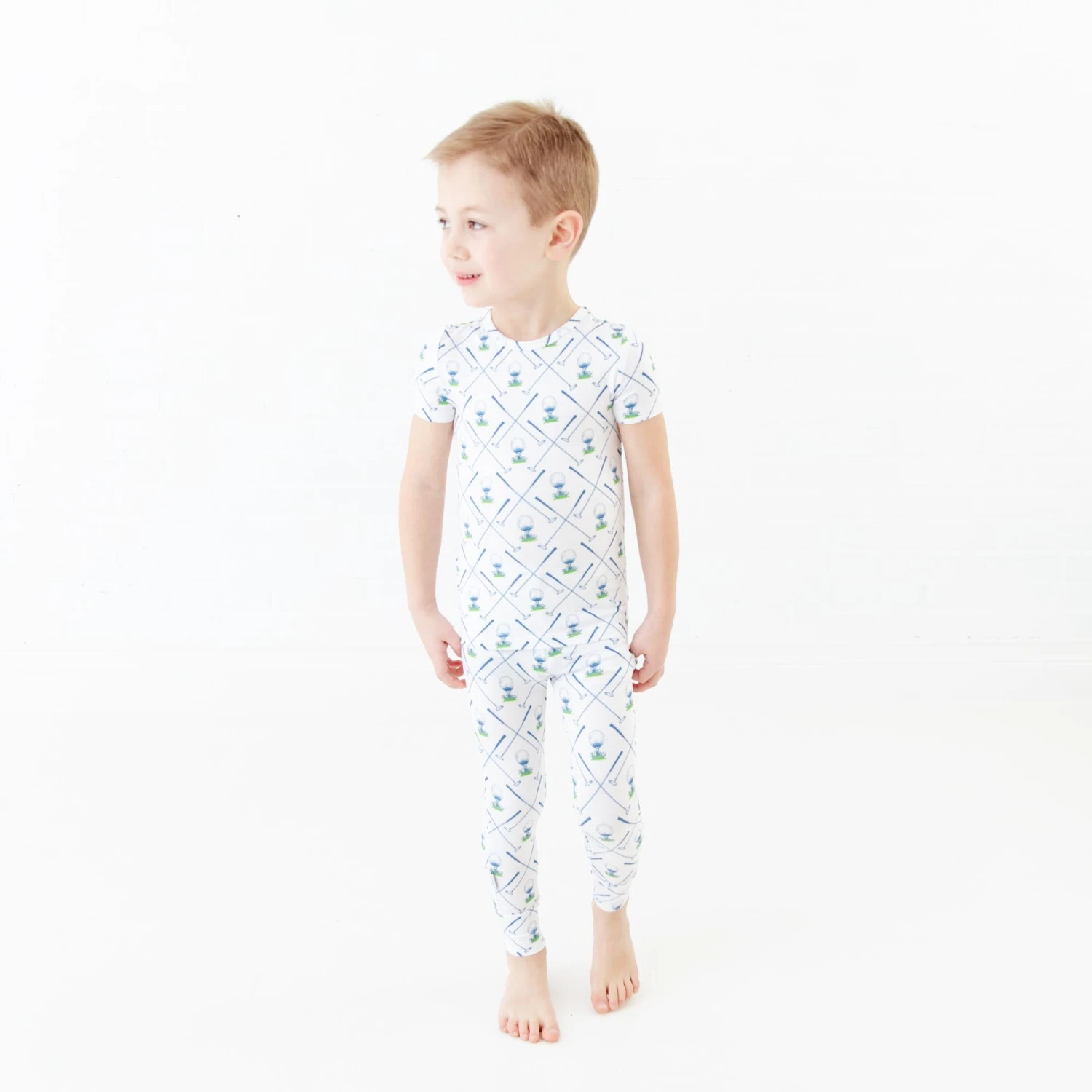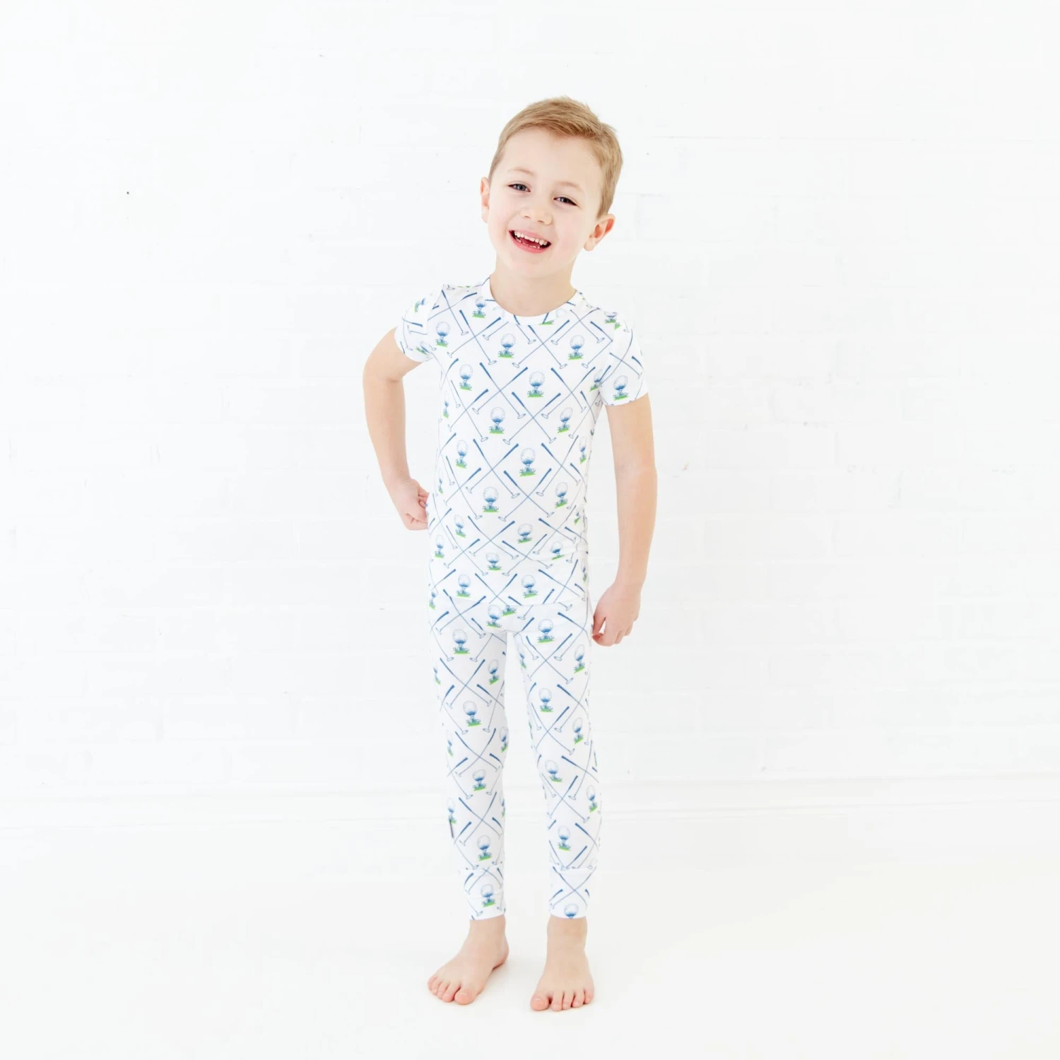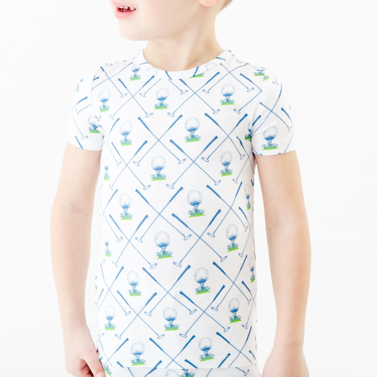 Your little one will be ready to tee off on the golf course in this collection! Made with the same same soft and stretchy bamboo viscose as our convertible footies, these two piece jamms are perfect for your favorite toddler or big kid! Featuring short sleeves and pants and an elastic waist band, our jamms are designed with a little extra length, which means they fit longer than your average pajamas!