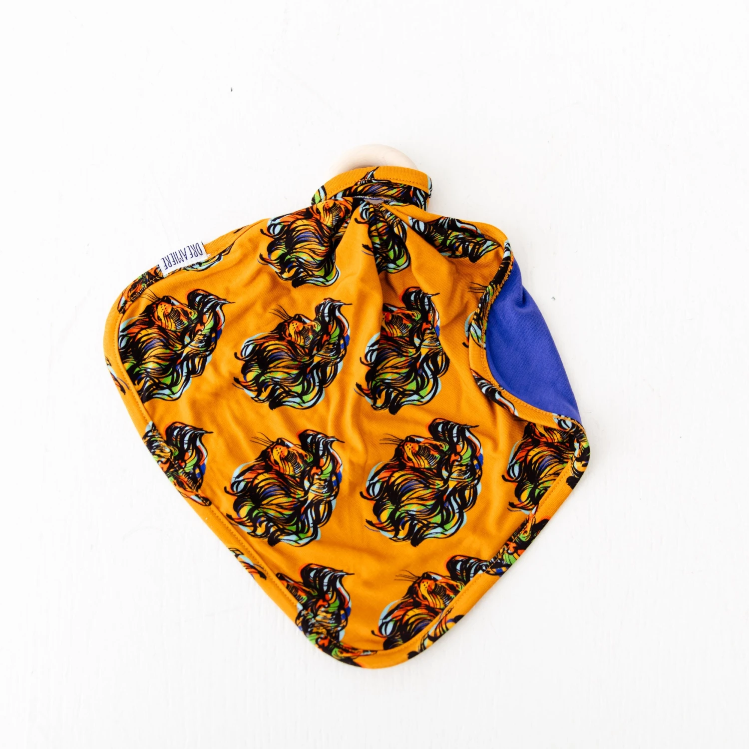 Your baby will love this buttery soft security piece. Both double-sided and reversible, our lovey comes with a wooden teether that can be replaced with your favorite pacifier or teether.