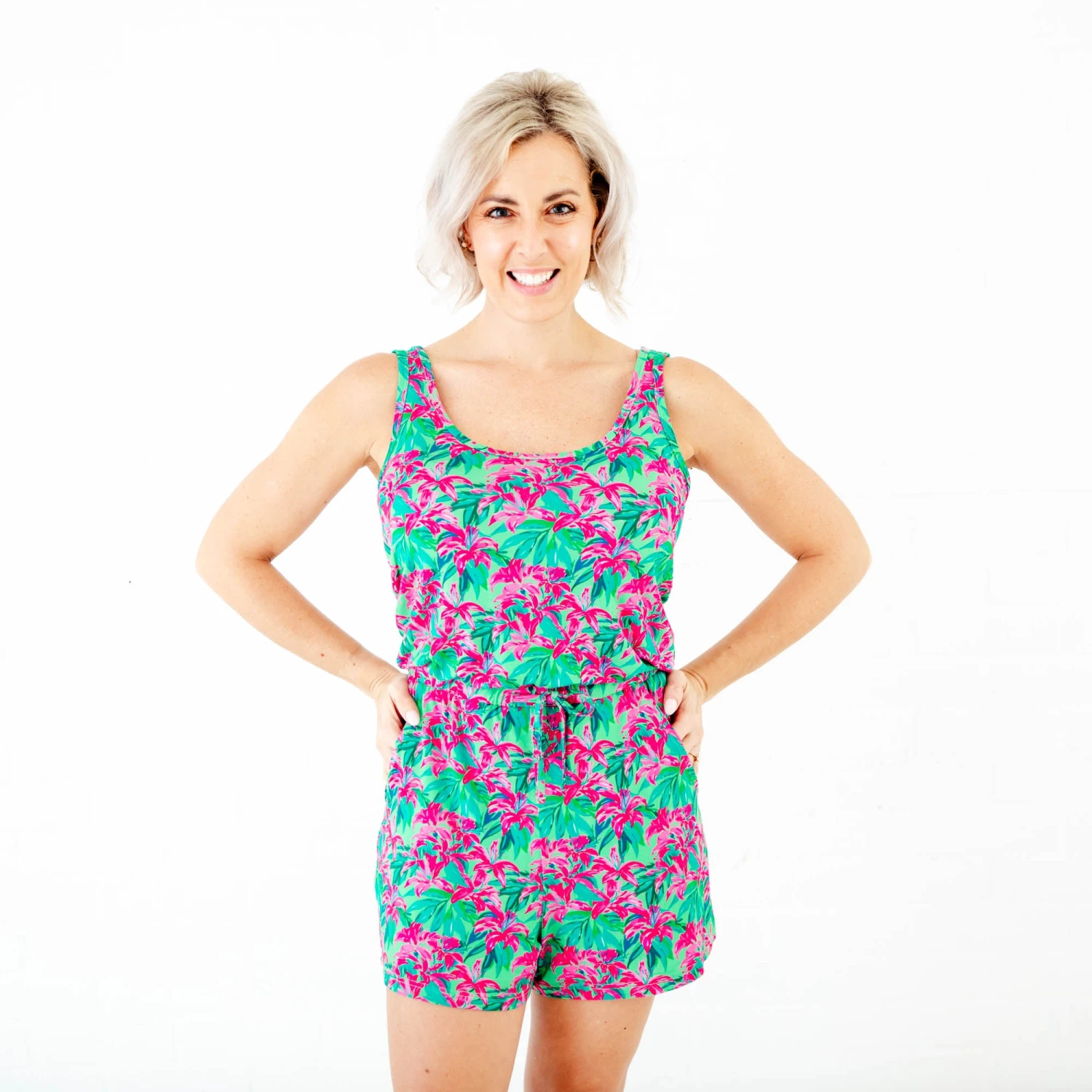 Dreaming of lush tropical plants and the vibrant colors of Hawaii! Your search for the perfect bamboo daywear piece stops right here! Our Women’s Everyday Romper features tank sleeves with a functional drawstring waist and shorts with pockets. This romper is perfect for coordinating with your little cuties!